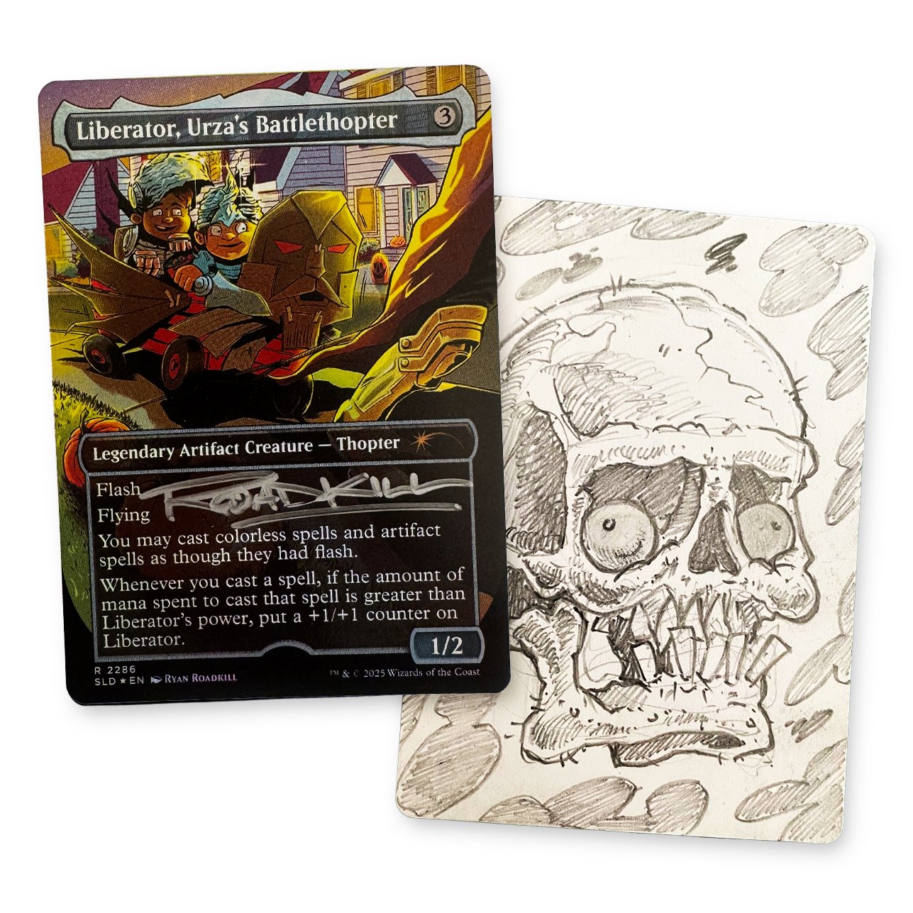 This is a customised Artist Proof card for the Magic the Gathering Liberator, Urza's Battlethopter 2286. From the Secret Lair drop.